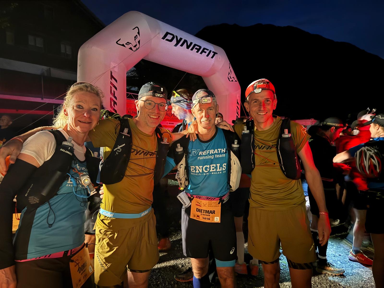 In diesem Jahr gingen die TVRler Doris Remshagen und Dietmar Stoppenbach in der Solo Konkurrenz und Olaf Mennicken und Alexander Hörniß als Team an den Start. Dieses Jahr ging es in 7 Etappen von Lech im Arlberg nach Reschen - bekannt durch seinen Kirchturm im See. Eine Woche lang jeden Tag im Mittel 35 km und 2500 Höhenmeter zu laufen ist eine extreme Beanspruchung für den Körper, was auch eine durchschnittliche Ausfallquote von 20% belegt. Die Strecken verlangen einem alles ab - nicht nur was das Muskuläre angeht, sondern es gibt immer wieder Passagen, die sehr anspruchsvoll sind und höchste Konzentration fordern, um Stürze zu vermeiden. Diese Bedingungen lassen sich auch im heimischen Bergischen Land nicht wirklich trainieren. In der Nacht zum Start gab es Neuschnee bis auf 2000 m, weshalb es schon für die erste Etappe eine Streckenänderung gab. Zum Start ging es bei bestem Wetter und 6 Grad los und auf einmal war man im Rennen. Bei traumhaften Aussichten, ein wenig durch liegengebliebenen Schnee ging es nach Bludenz. Nach 5:20 Stunden waren dann die „Hilly Billy Goats“ ( Olaf & Alex ) im Ziel auf Platz 5. Und schon war das Fieber wieder da und die Endorphine schossen ein. Doris machte es noch besser, kam als dritte in ihrer Kategorie ins Ziel uns war somit am Abend bei der Siegerehrung auf der Mutteralm direkt auf dem Podium.