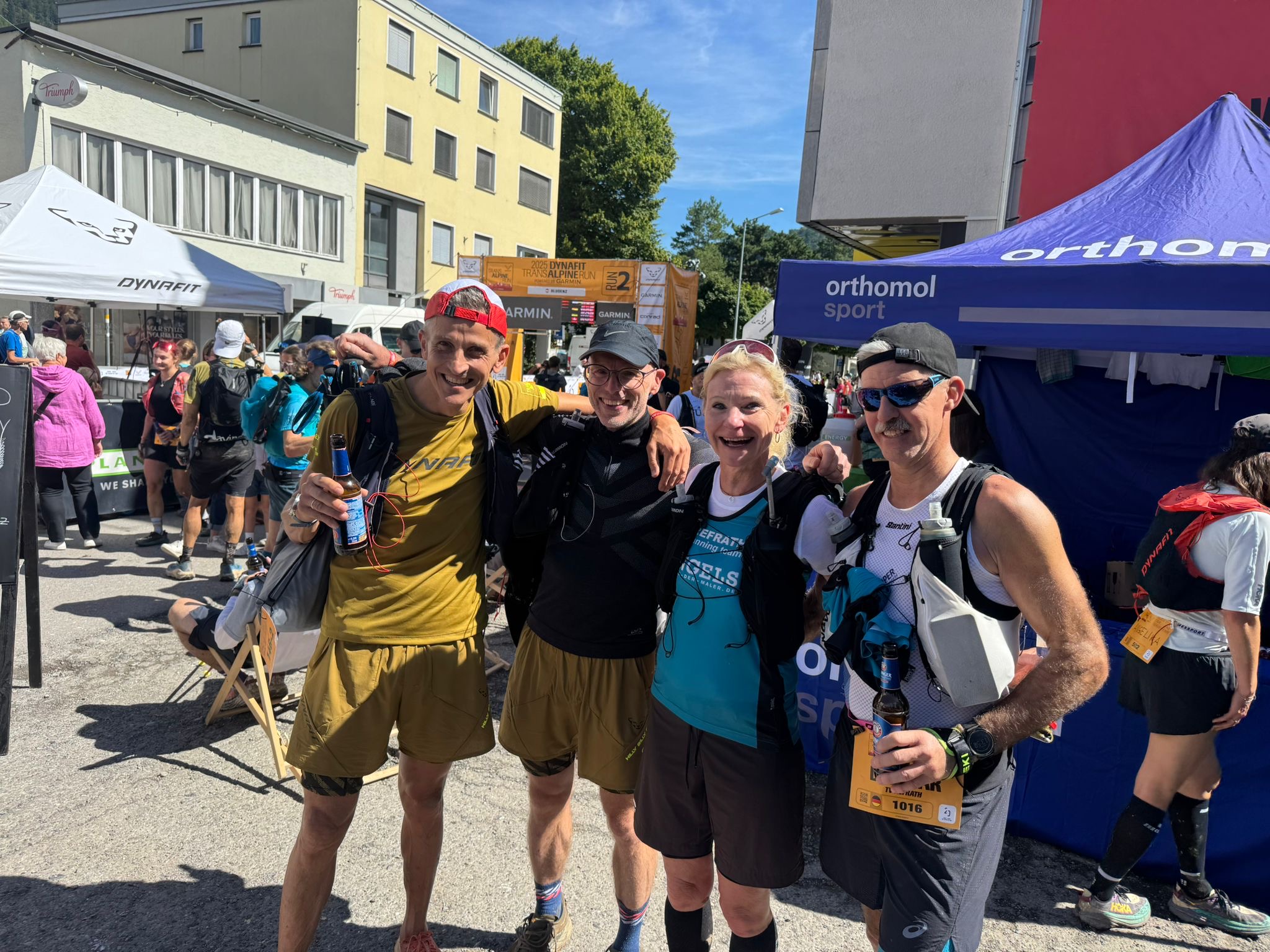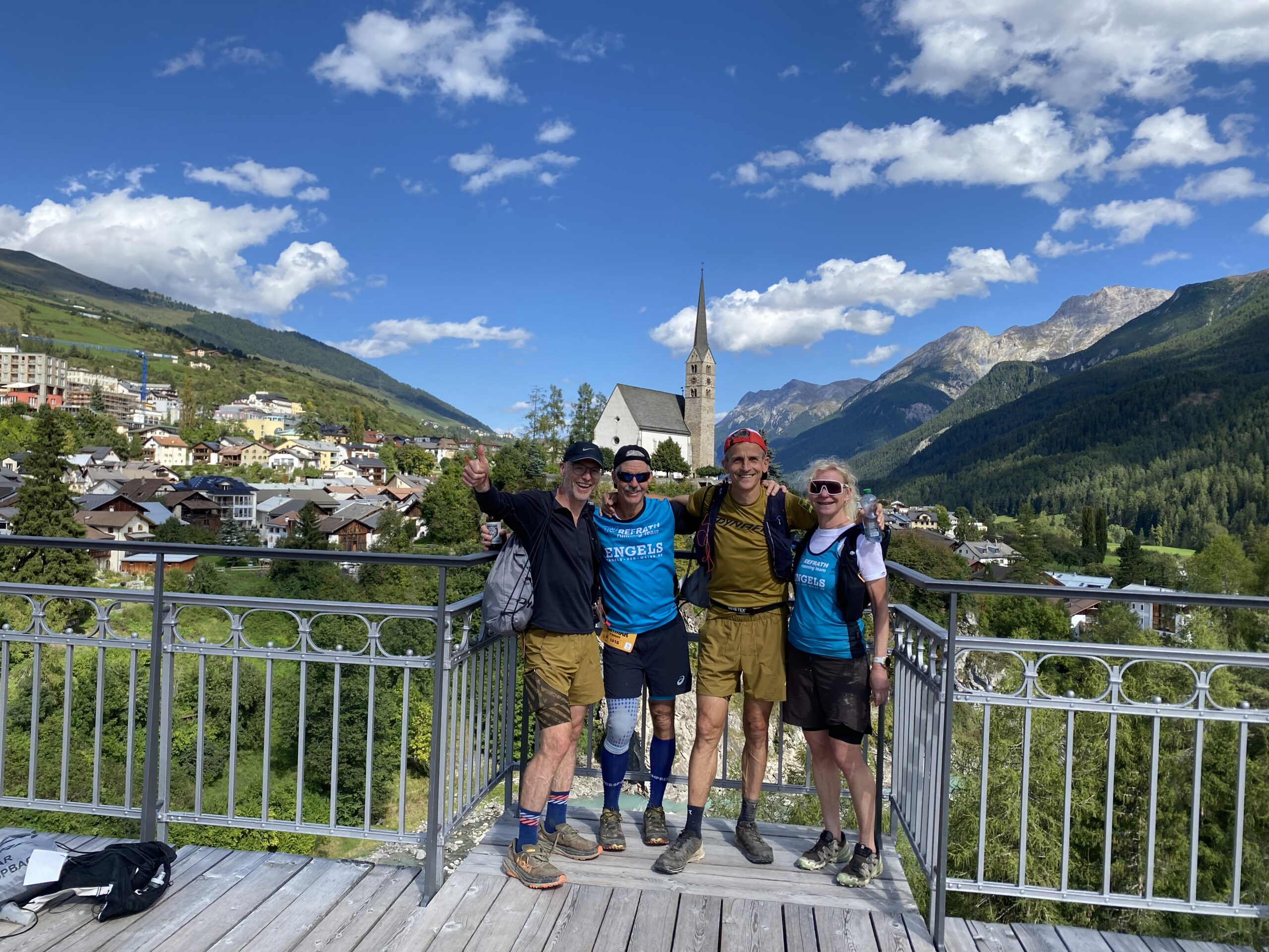 Durch den kürzeren Tag und die dadurch längere Erholung ging es dann über 35 km nach Scoul. Es ging direkt am Stück 1600 m nach oben und dann war man auf einmal über den Wolken. Am letzten Up und Downhill kam Alex in einen Hungerast was es gerade in diesem Terrain nicht einfach macht. Mit Cola am letzten VP kamen die Kräfte wieder, aber weil auch die Zweitplatzierten schwächelten, kamen Olaf und Alex als vierte ins Ziel. Doris machte den 4 Platz und festigte ihren dritten Platz im Gesamtklassement. Auch Stoppi kam immer besser in Schwung und lag auf Platz 18. Nach einem schönen Pasta Dinner auf der Motta Naluns mit den anderen Teams wurden Erfahrungen des Tages ausgetauscht. TAR Family wird es genannt weil man im Gegensatz zu Einzelrennen den Abend gemeinsam verbringen und Leid und Freude teilen kann.