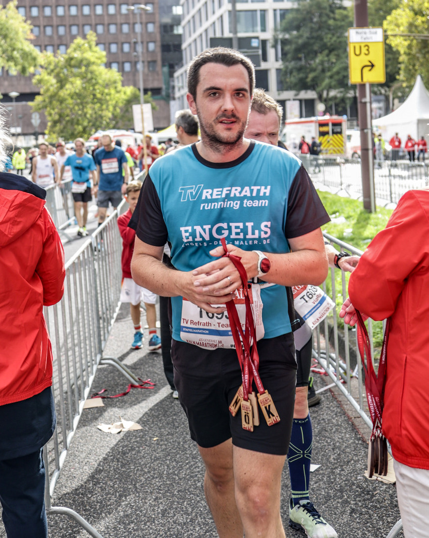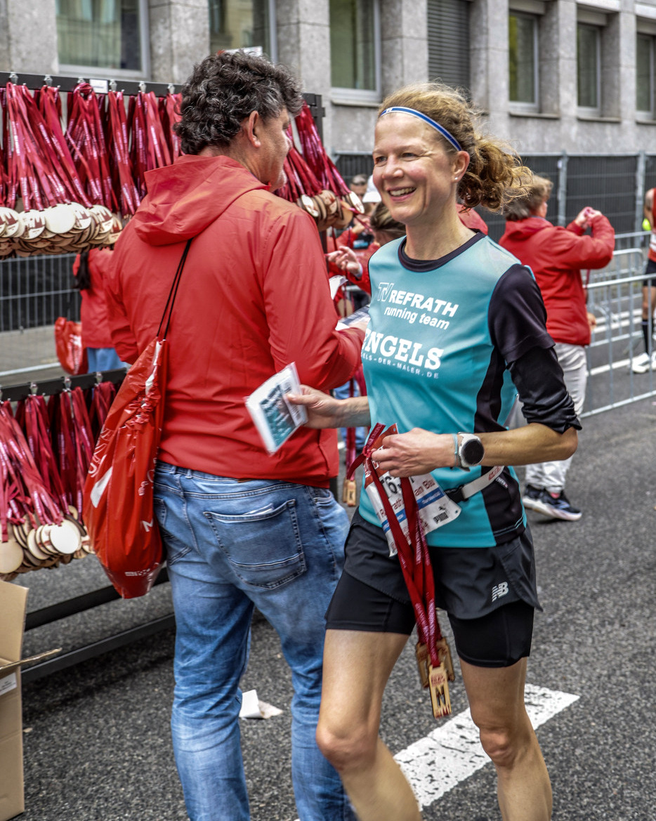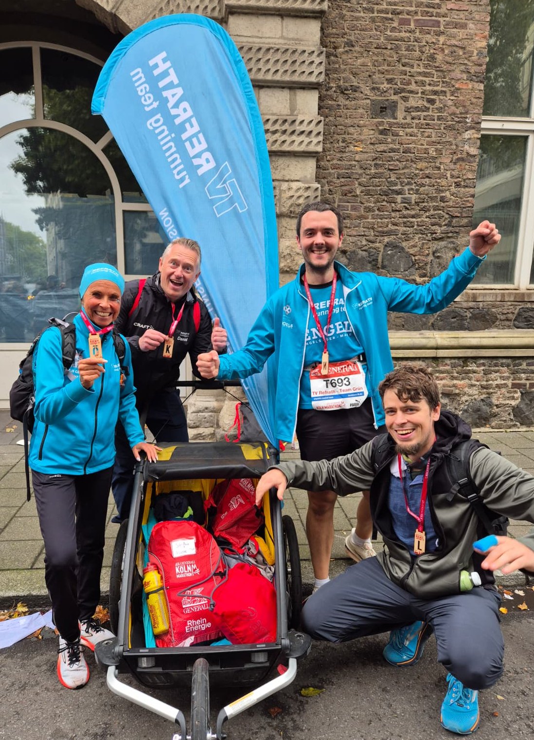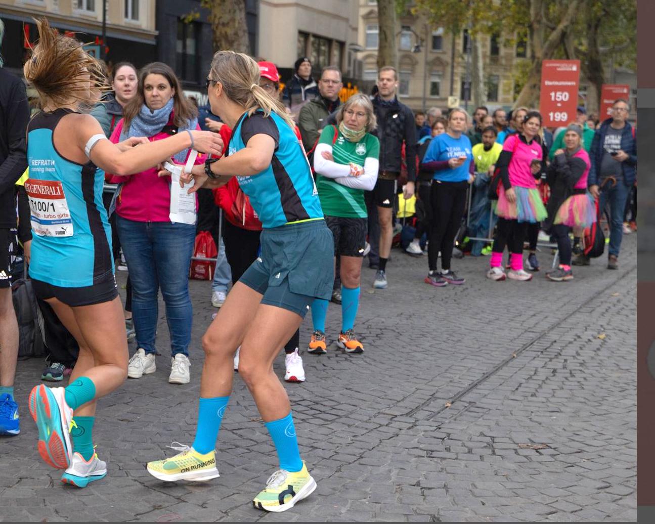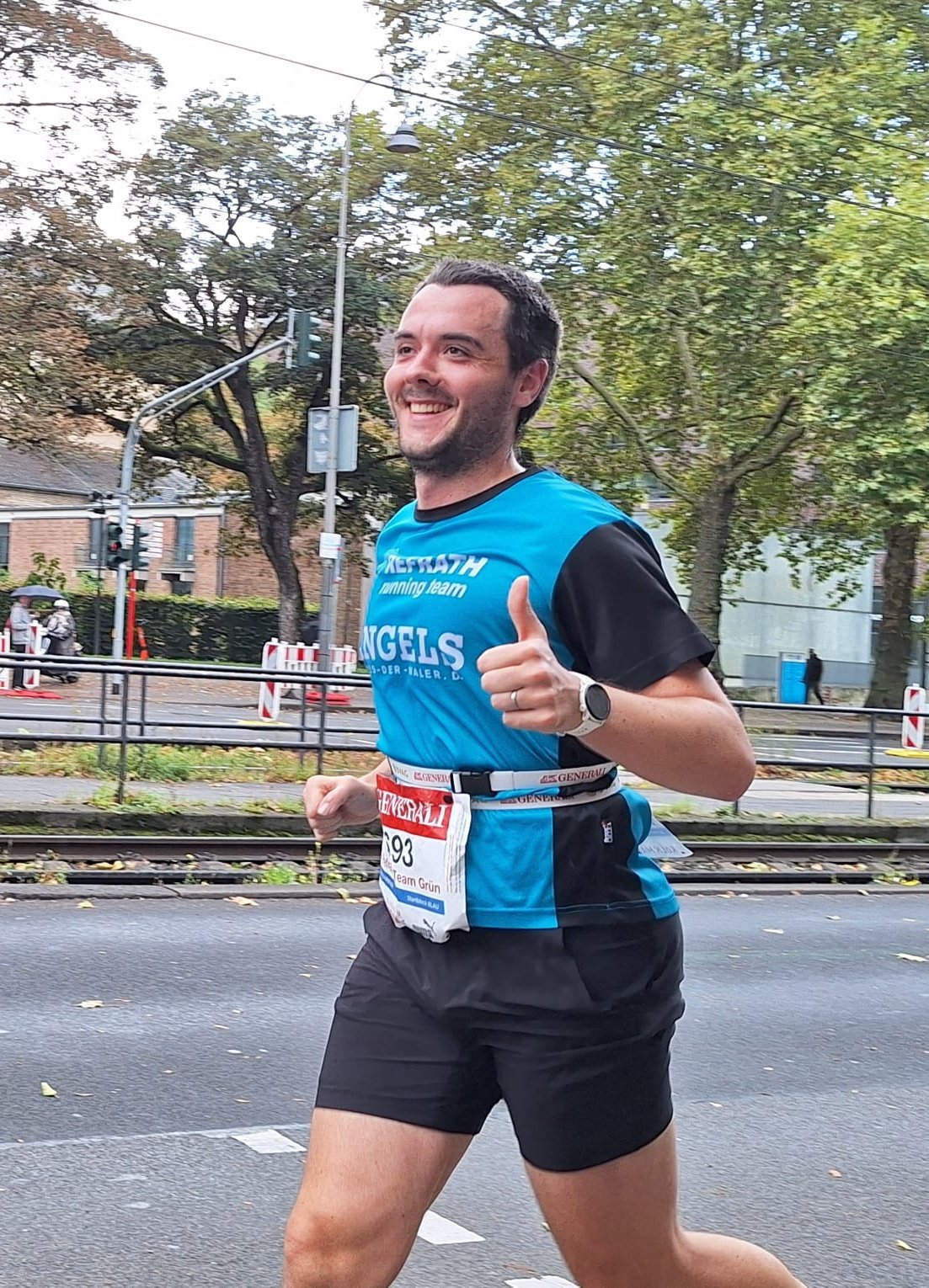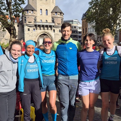Am Samstagabend, kurz vor dem großen Tag, war Organisator Hendrik Thierolf sichtlich erleichtert: alle Wechselstellen geplant, alle Startnummern sortiert, alle Läufer:innen startklar. Und am Sonntag zahlte sich die gute Vorbereitung aus – die Stimmung war ausgelassen, die Motivation riesig. Vom Start weg und von Wechselzone zu Wechselzone zog das Team mit Staffel-Guide Michael Hartmann, Kleider- und Verpflegungswagenwagen und lautstarker Unterstützung quer durch Köln und zeigte sichtbar Flagge für das TV Refrath running team.