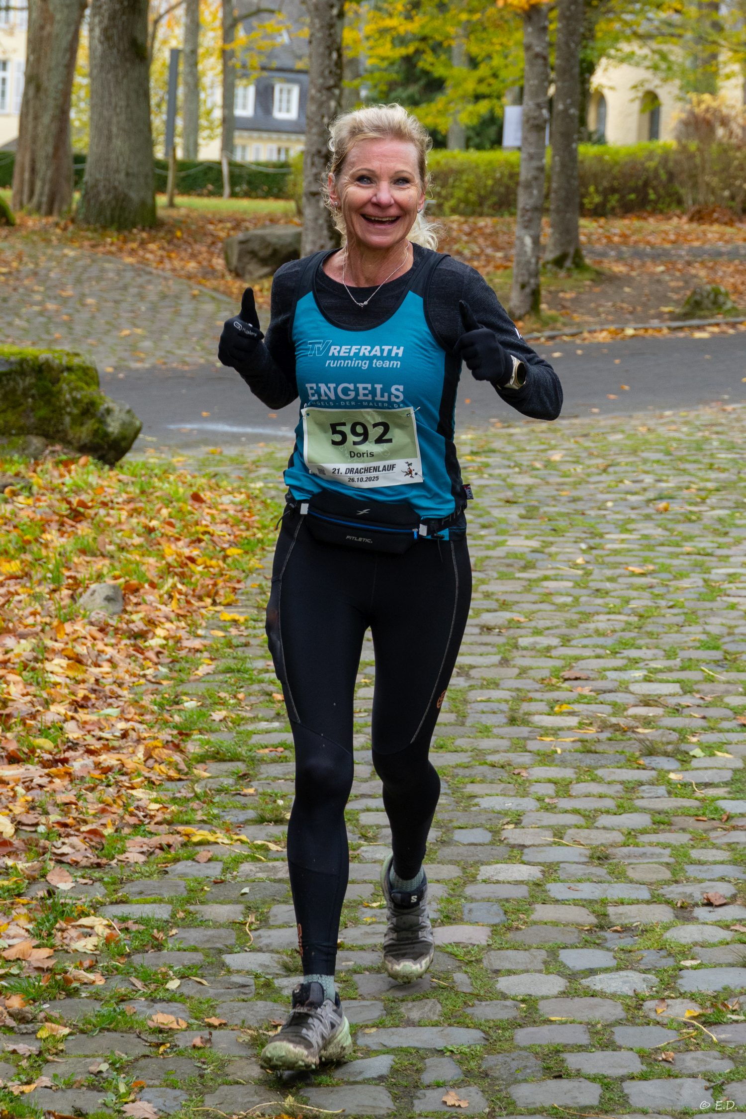 Der Drachenlauf ist heißbegehrt unter den Landschafts- und Trailläufern. Drei aus unserem running team hatten sich vorgenommen, die sehr anspruchsvolle 26km lange Strecke durch das Siebengebirge inklusive dem berüchtigten Bittweg zu meistern. Das alle drei Drachenbezwinger trotz der Strapazen glücklich geworden sind, beweisen die schönen Fotos von Egbert, der mit Cornelia seit vielen Jahren diesen Klassiker als Helfer unterstützt. Gratulieren wir Doris zu ihrem W55-Sieg mit 2:50:59 Stunden, Olaf für seinen 2. Platz in der M50 in starken 2:19:12 std und Kai (12. M55), der zusammen mit Doris unterwegs war.