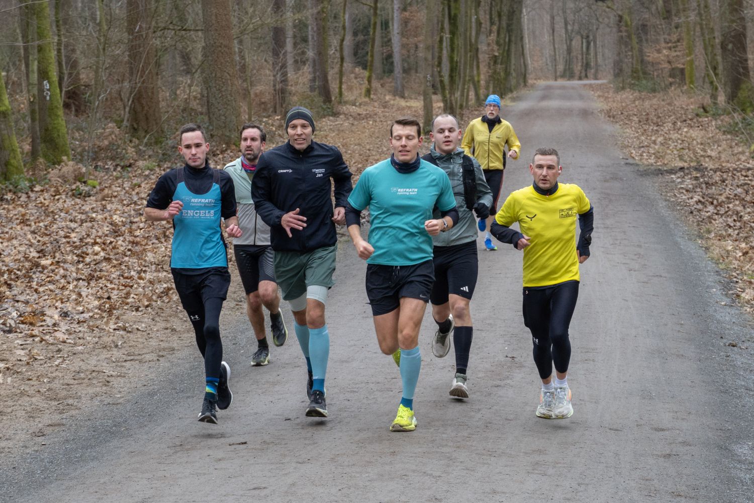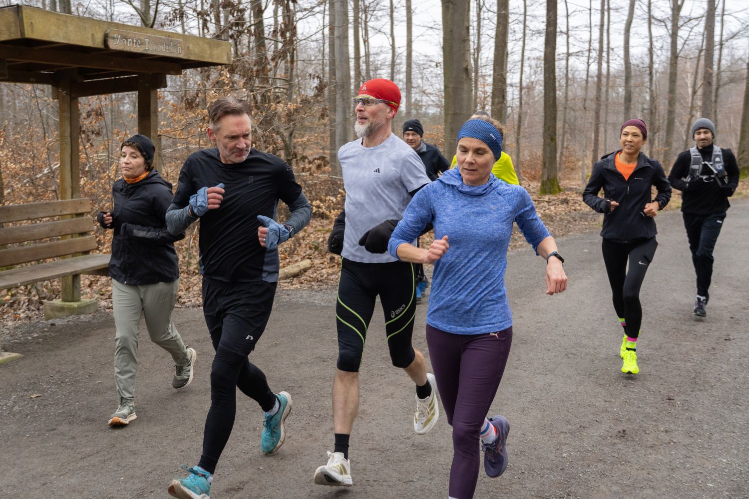 Das bunte Treiben begann bereits eine gute halbe Stunde vor dem Start des beliebten Köfo-Marathon-Probelaufes. Vor dem Albertus-Magnus-Gymnasium in Bensberg versammelten sich rund 70 Läuferinnen und Läufer aus ganz NRW zum gut gelaunten Fotoshooting.