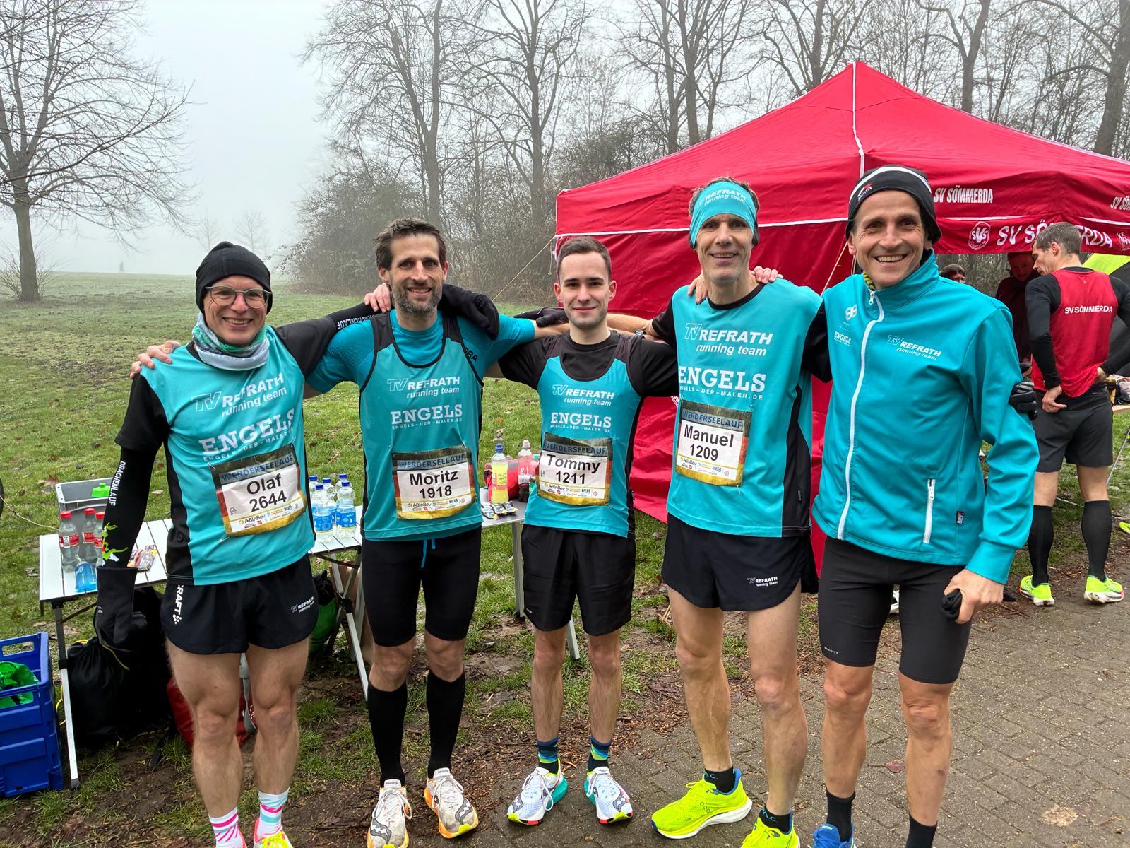 Die flache und schnelle Strecke wie auch die Wetterbedingungen (5° Grad am Start und nur wenig Wind) boten beste Voraussetzungen für schnelle Zeiten. Alle sechs Starter vom TV Refrath running team: Tommy Stelzer, Niklas von der Assen, Olaf Menniken, Alexander Hörniß, Manuel Skopnik und der erst am Vortag verdient zum deutschen Ultraläufer des Jahres 2025 gekürte Moritz Ehm erreichten das Ziel und zeigten starke Leistungen und gute AK-Platzierungen.