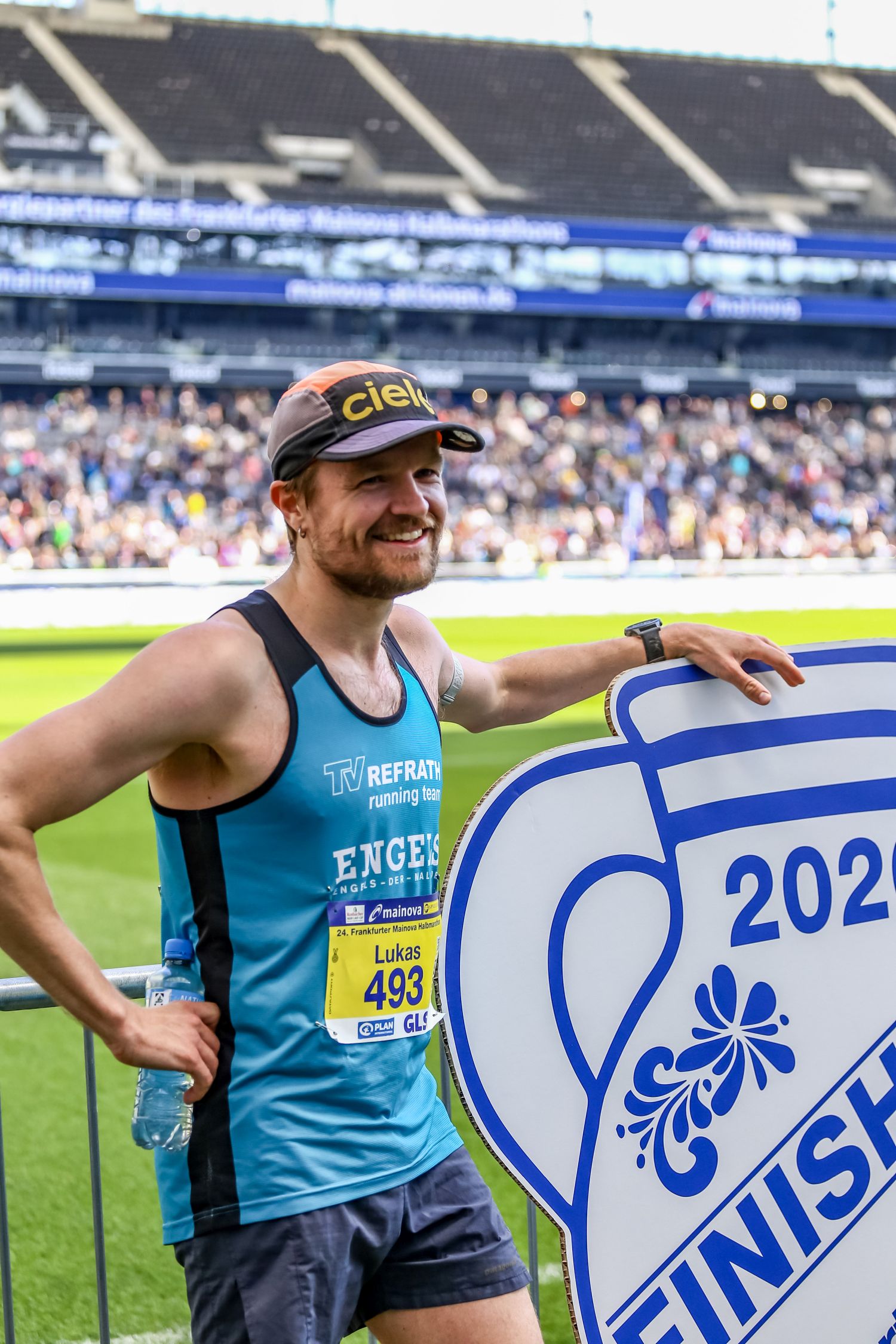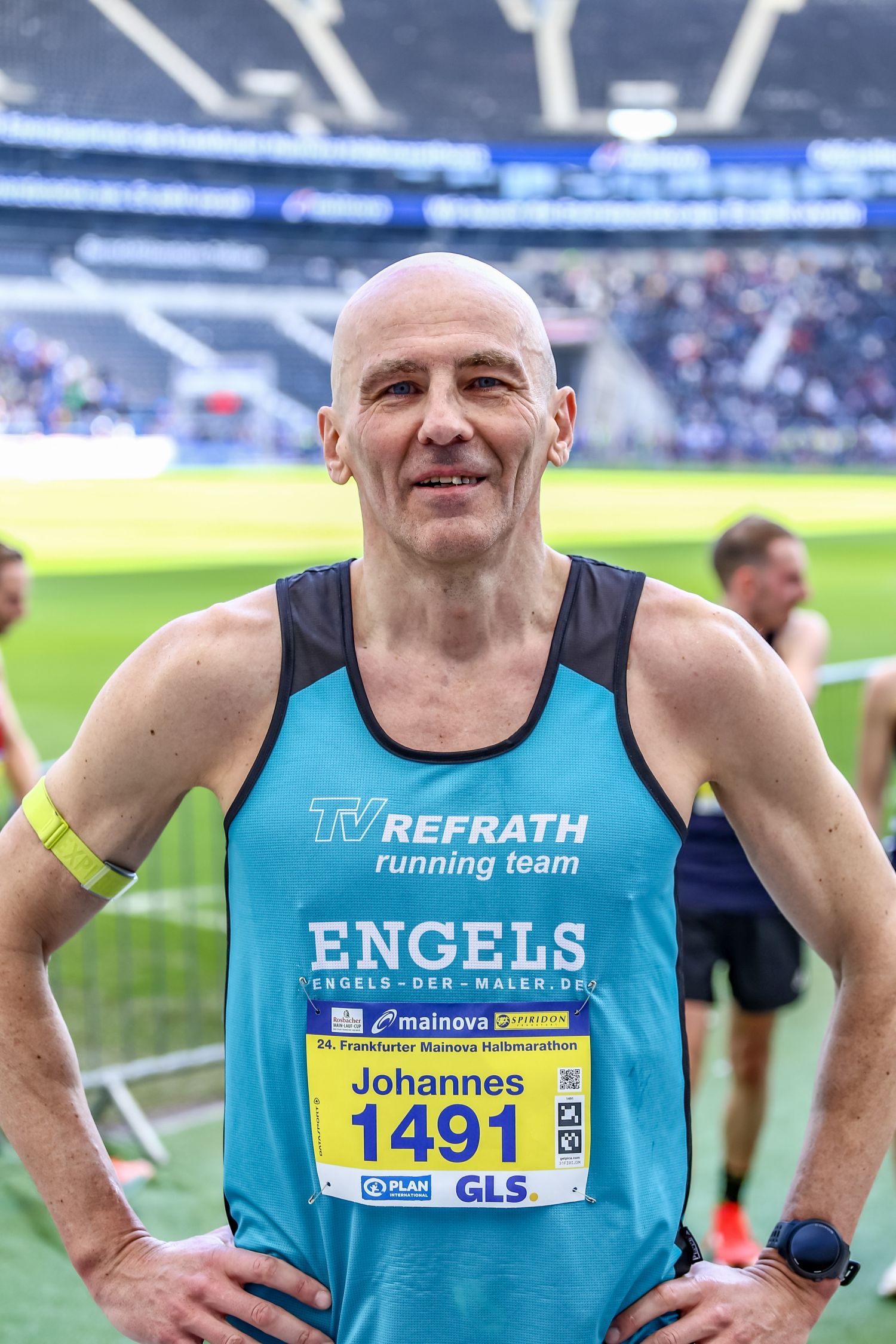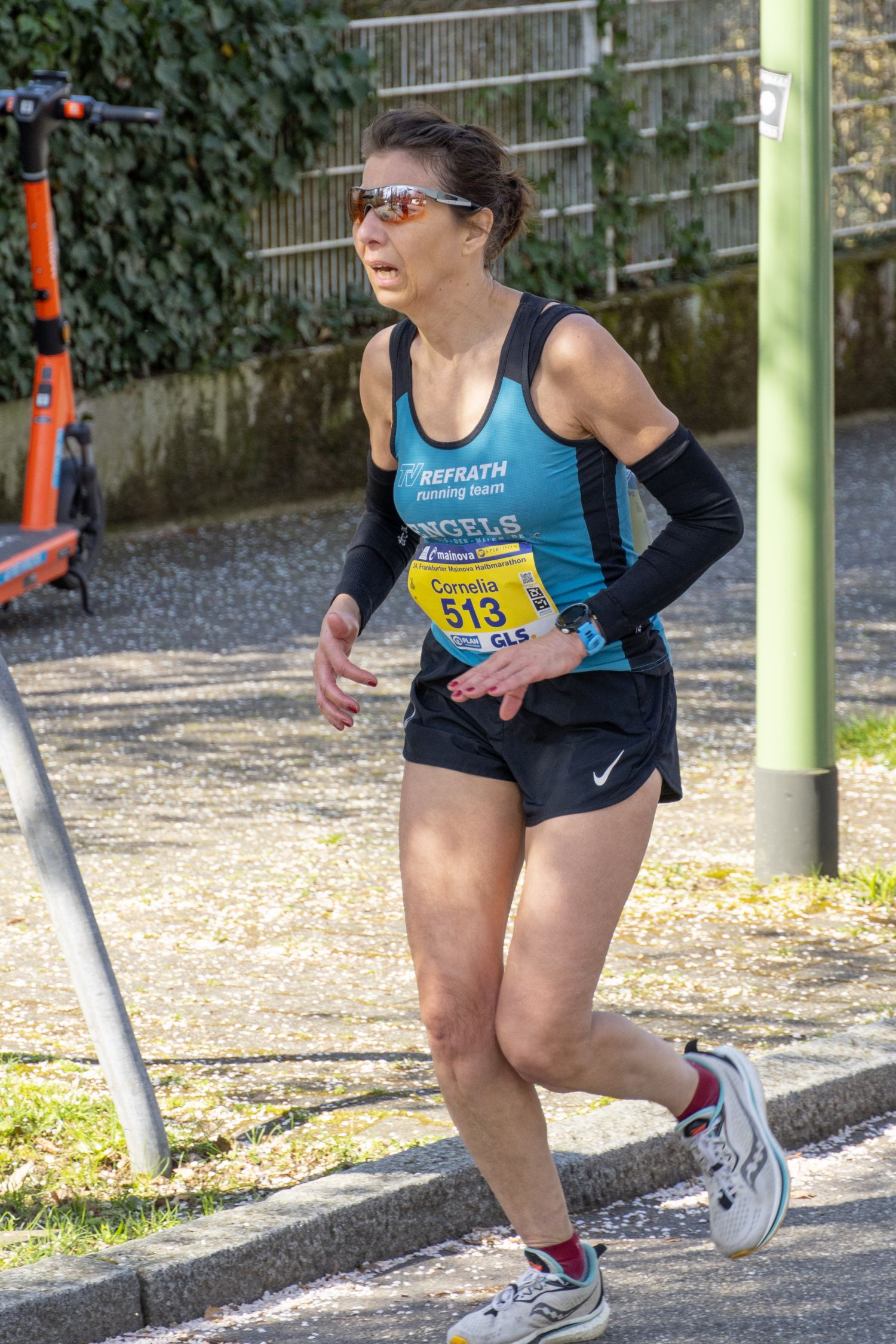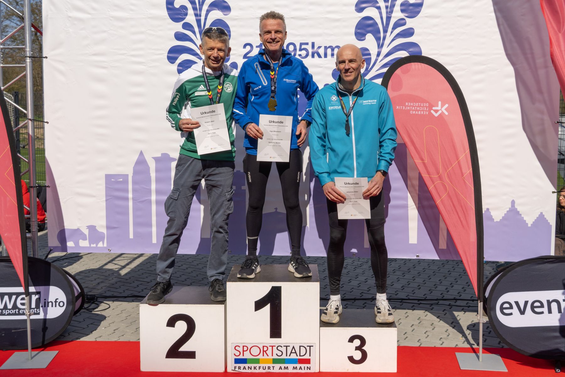Gleich fünf aussichtsreich gemeldete Starter vom TV Refrath running team konnten wegen Krankheit oder Verletzung leider nicht starten. Das war vor allem für die ambitionierten Läuferinnen und auch für TVR-Lauftrainer Jochen Baumhof etwas bitter, bestand doch die realistische Chance, erstmals eine Mannschaftsmedaille in der Frauenwertung zu gewinnen. So blieb einzig Josefine Kratzer übrig, die mit einer perfekten Renneinteilung als 24. der W30 in 1:23:41 std eine neue Bestzeit lief. Ihn ihrem ersten Rennen ihrer neuen AK W60 lag Cornelia Türk lange auf Rang zwei. Doch auf den letzten fünf Kilometern machte sich ihr Trainingsrückstand bemerkbar. Nach 1:40:11 Stunden lief die Bensbergerin ins Bundesliga-Stadion der Eintracht Frankfurt ein und sicherte sich die verdiente Bronze-Medaille.